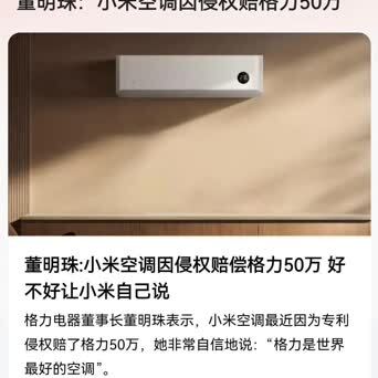 近日,CNMO等媒体报道,在珍知酌见栏目里,格力电器董事长董明珠表示,小米空调最近因为专利侵权赔了格力50万。这一点说明格力的确给力,自己的专利无数,还没有任何一个洋人,都是中国工程师。这是董明珠视频说的。